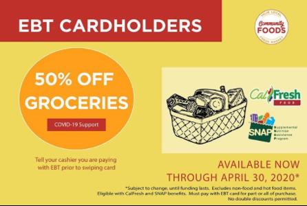 Is offering 50% off groceries for those paying with EBT, CalFresh, and SNAP benefits through April 30th. They are a locally owned food store supporting the West Oakland Area. Let's support our local businesses during this time.
